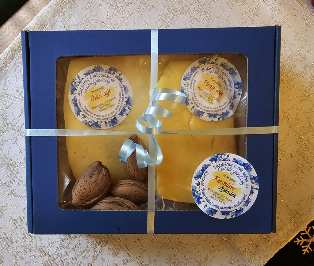 Karakteres, édeskés ízvilágú, érlelt kemény sajt. Főként reszelve ételek ízesítésére vagy előételként ajánljuk. Ínyenc csemege az egyedi és különleges sajtok szerelmeseinek. Összetevők: tehéntej, só, tejoltó enzim, lizozim enzim, kultúra. ~200g (±25g)-os egységekben értékesítjük. Termelő: Boros Liliána (13-4-T-0398) 8653 Ádánd Halastó u 1162/4 Minőségét megőrzi: a csomagoláson feltüntett időpontig, jellemzően a csomagolástól számított 21 napig. Kárpáti borzderes szarvasmarha fajta tejéből készült minőségi, kézműves termék. Tartásuk során nem alkalmazunk mesterséges termelésfokozó takarmányokat, technológiákat, illetve hormonokat. Legelőinket nem permetezzük, nem használunk műtrágyát vagy más termelésfokozó kemikáliát. Minden termékünk mentes a mesterséges adalékoktól, magas beltartalmú, tiszta élelmiszer.